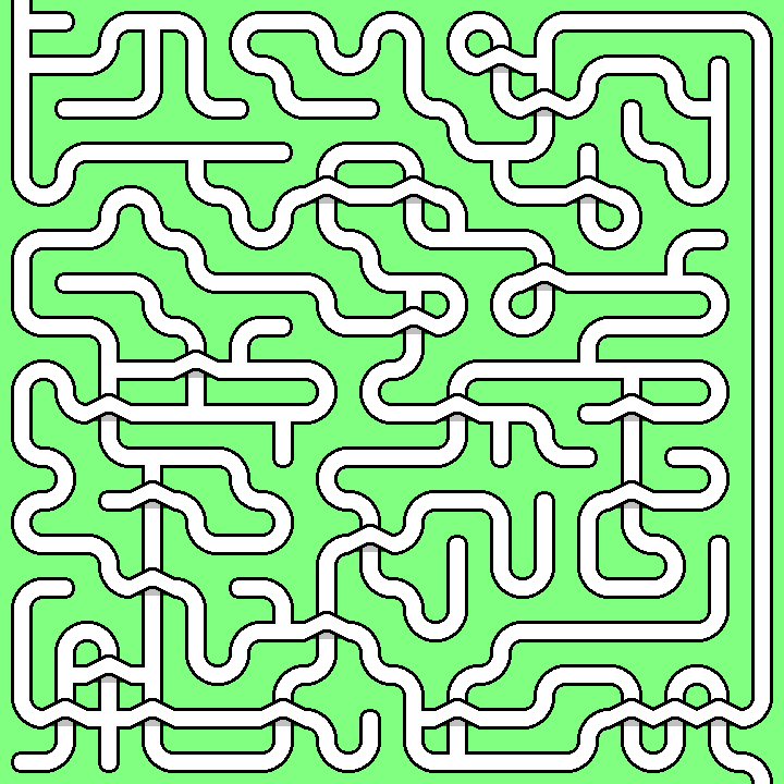 A web-based program that draws mazes with bridges. Click on left picture and refresh your browser to make a new maze. Click picture to run, then hit F5 to generate new maze. |